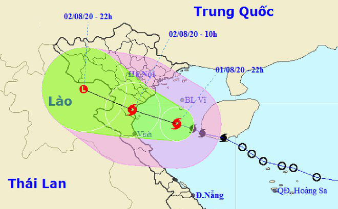 Theo tin bão mới nhất từ Trung tâm Dự báo Khí tượng Thuỷ văn Quốc gia, hồi 10 giờ ngày 2.8, vị trí tâm bão ở khoảng 19,4 độ Vĩ Bắc; 106,1 độ Kinh Đông, ngay trên vùng biển ven bờ các tỉnh từ Thái Bình đến Nghệ An.