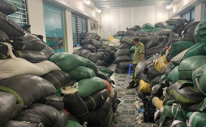 Lực lượng liên ngành vừa phát hiện 9,5 tấn găng tay cũ, có dấu hiệu đã qua sử dụng tại trụ sở Công ty cổ phần Hoàng Long Bắc Cạn (huyện Gia Lâm, TP Hà Nội).