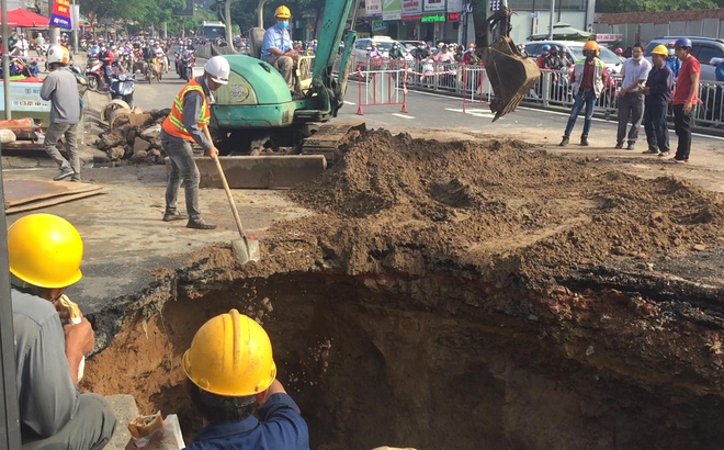 Lực lượng chức năng đã cật lực làm việc, vừa lắp hố vừa điều phố giao thông ở đây giúp các phương tiện di chuyển dễ dàng hơn...