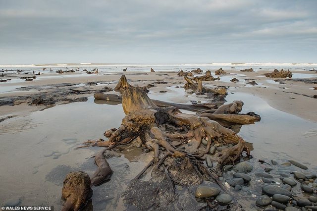 Cơn bão Francis quét qua xứ Wales hồi cuối tháng trước đã làm lộ thêm những gốc cây cổ xưa của một khu rừng bí ẩn bị nhấn chìm dưới cát khoảng 4.500 năm trước. Nhiều gốc cây cổ lộ ra nhiều khả năng thuộc về khu vực thời Đồ Đồng bị chôn vùi.