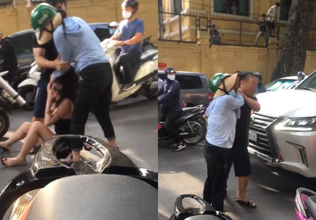 Chiều nay (15/9), trên mạng xã hội xuất hiện nhiều đoạn clip ghi lại cảnh đánh ghen trên phố ở Hà Nội. Theo đó, một người được cho là vợ đã mặc áo chống nắng, bịt kín mặt, đội mũ bảo hiểm của một hãng xe ôm công nghệ lao vào đánh ghen. Người chồng cùng nhân tình ngồi trong xe Lexus 570 đã bị lôi ra ngoài.