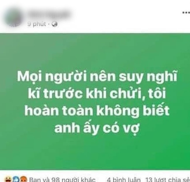 “Mọi người nên suy nghĩ kỹ trước khi chửi, tôi hoàn toàn không biết anh ấy có vợ”.