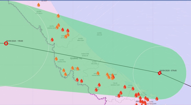 Ông Mai Văn Khiêm, Giám đốc Trung tâm dự báo Khí tượng Thủy văn Quốc gia, nhận định trọng tâm bão đi vào là các tỉnh Quảng Trị và Thừa Thiên - Huế. Bão có thể đổ bộ trong 1-2 giờ tới, khoảng trưa 18/9.