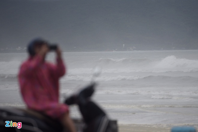 Theo ghi nhận của ****, tại bãi biển Mỹ Khê, khoảng 8h30, nhiều người dân vẫn mặc áo mưa ra bãi biển chụp ảnh bất chấp mưa gió. Một số người dân chia sẻ họ ra biển vì tò mò, muốn ngắm biển trước bão.