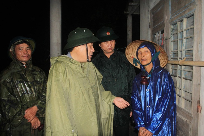 Ông Hà Sỹ Đồng (áo mưa xanh) kiểm tra việc sơ tán người dân ra khỏi khu vực nguy hiểm ở Quảng Trị đêm 17/9. Ảnh: Tiến Nhất.