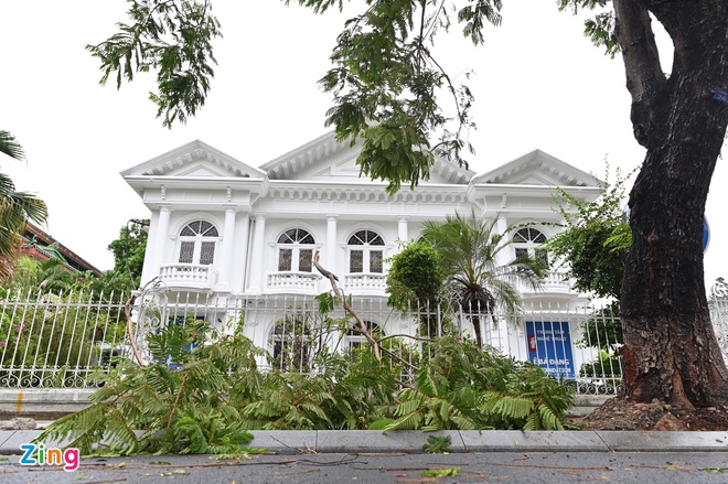Lúc 8h30, trên đường Lê Duẩn đoạn trước kỳ đài Huế có gió giật rất mạnh. Hai cây cổ thụ và một số cây nhỏ bị bật gốc, chắn ngang lòng đường.