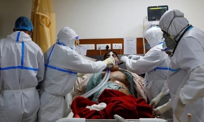 Nhân viên y tế chăm sóc cho một bệnh nhân nhiễm nCoV tại bệnh viện ở ngoại ô thủ đô New Delhi, Ấn Độ, ngày 15/9. Ảnh: Reuters.