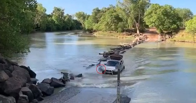 Đoạn video quay cảnh một lái xe vẫn liều mạng băng qua khúc sông Cahills Crossing nơi có nhiều cá sấu, chỉ vài tuần sau vụ xe của một cặp vợ chồng bị hơn 10 con cá sấu bao vây tại cùng địa điểm.