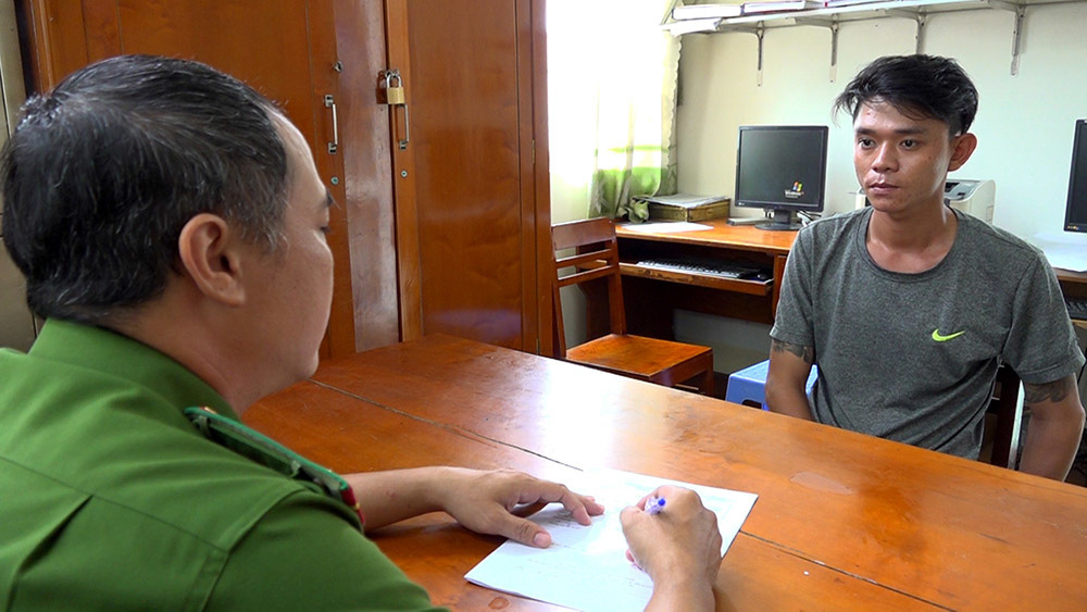 Nghi can Hậu tại cơ quan Công an. Ảnh: Tiến Tầm