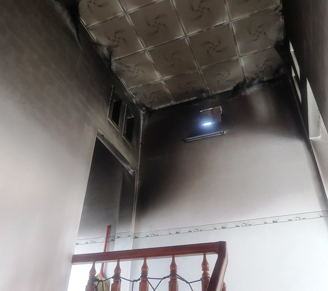 Phát hiện có cháy ở phòng trên tầng 1, vợ chồng anh Út vội vã chạy lên cứu con nhưng do hai cháu khóa trái cửa không thể cứu được.