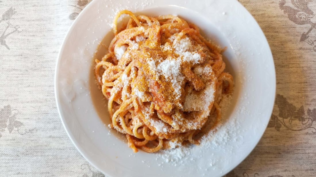 Amatriciana là nước sốt cà chua ngọt, đặc sánh với guanciale (một loại thịt xông khói có hương vị đặc biệt từ nạc nọng heo), và đủ sức làm ấm thực khách bằng tiêu hoặc ớt, cùng phô mai pecorino. Ảnh: CNN