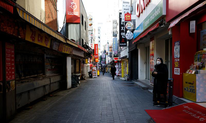 Một khu phố mua sắm vắng vẻ tại Seoul, Hàn Quốc, hôm 23/11. Ảnh: Reuters.