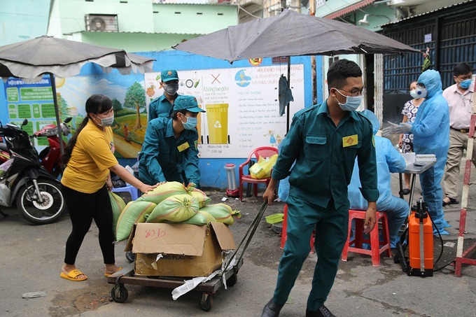 UBND quận 6 ngày 1/12 cung cấp gạo cho người dân bị cách ly 14 ngày. Ảnh: Đình Văn.