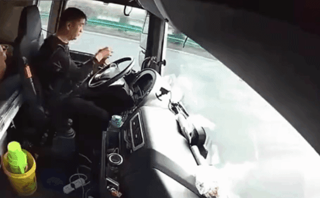 Tài xế ngừng bấm điện thoại cũng là lúc va chạm nghiêm trọng xảy ra. Anh ta không kịp xử lí tình huống khiến chiếc xe mất lái lao ầm ầm về phía trước. Một người đàn ông khác, được cho là phụ xe, thậm chí còn trôi ngược về phần đầu xe vì cú rung lắc kinh hoàng.