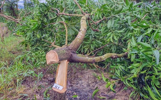 Kẻ xấu dùng cưa máy đốn hạ 93 cây xoài đang cho thu hoạch. Cảnh sát đã vào cuộc điều tra.