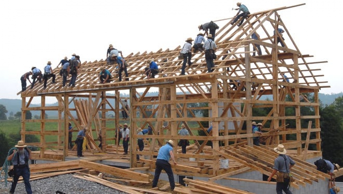 Người Amish thành lập những đội xây dựng để xây nhà ở và các công trình khác cho những người ngoài cộng đồng của mình. Ảnh: AP