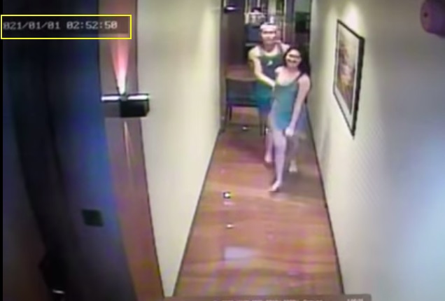 Theo hình ảnh từ camera ghi lại, vào lúc 2:52 AM ngày 1/1/2021, Dacera được nhìn thấy ở hành lang khách sạn cùng với một người đàn ông đội mũ lưỡi trai, lúc này không có thêm bất cứ ai xuất hiện trong khung hình.
