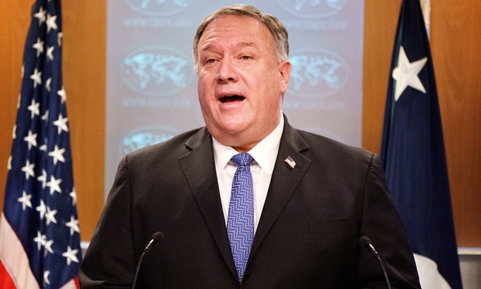Ngoại trưởng Mỹ Mike Pompeo tại cuộc họp báo ở Bộ Ngoại giao tháng 11/2020. Ảnh: Reuters.
