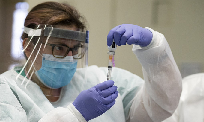 Nhân viên y tế Mỹ chuẩn bị tiêm liều vaccine tại New York hôm 10/1. Ảnh: AFP.