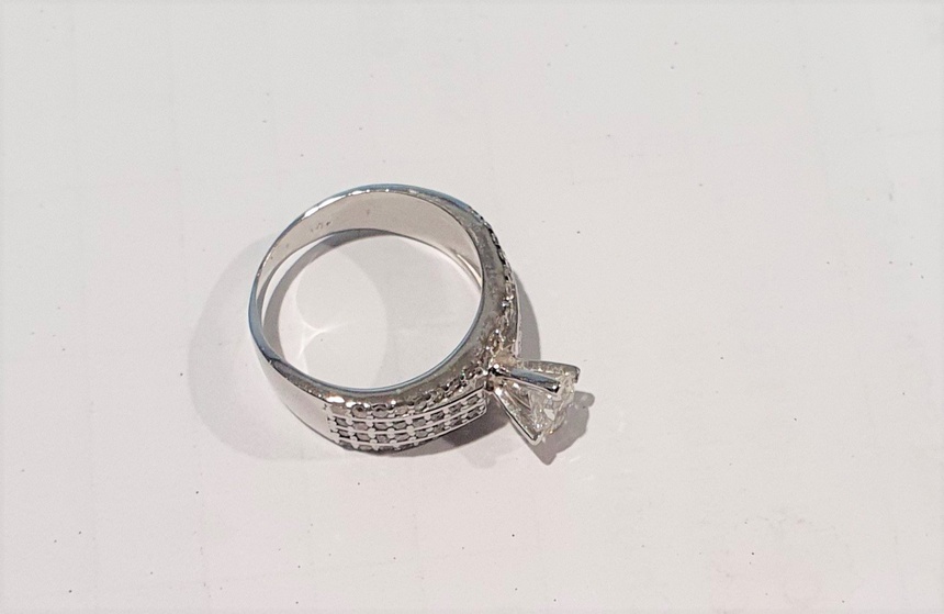 Một chiếc nhẫn kim cương bị đánh rơi trên máy bay đã được các tiếp viên của Vietnam Airlines tìm thấy trên chuyến bay Hà Nội - TP.HCM chiều 8/1. Ảnh: HVN.