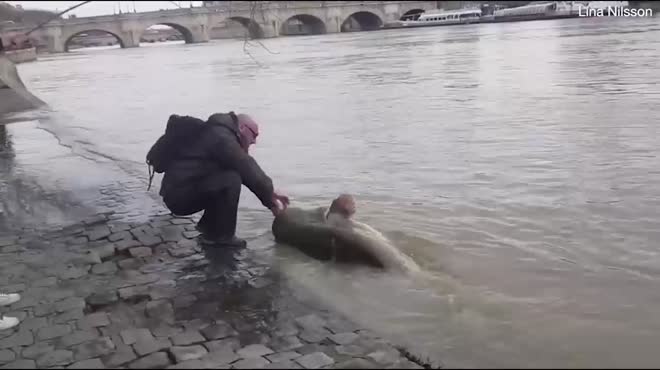 Một người đàn ông đã lôi lên khỏi mặt nước sông Seine, Pháp một con vật giống như "quái vật hồ Loch Ness", những người chứng kiến đã không khỏi kinh ngạc vì kích thước của nó.