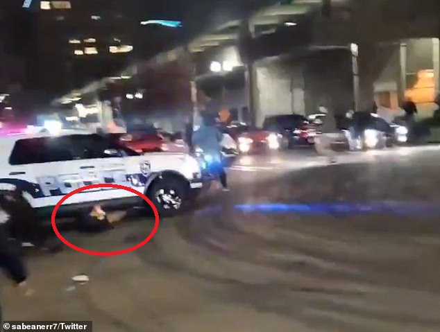 Trong một video được chia sẻ trên mạng xã hội, chiếc SUV cảnh sát với còi báo nhấp nháy liên tục bị đám đông vây quanh. Bất ngờ, chiếc sĩ quan bên trong điều khiển xe lao về phía trước, nơi một số người đang đứng chặn đầu. Nhiều người bị ngã xuống đất. Chiếc SUV thậm chí còn chèn qua một người trước khi phóng đi.
