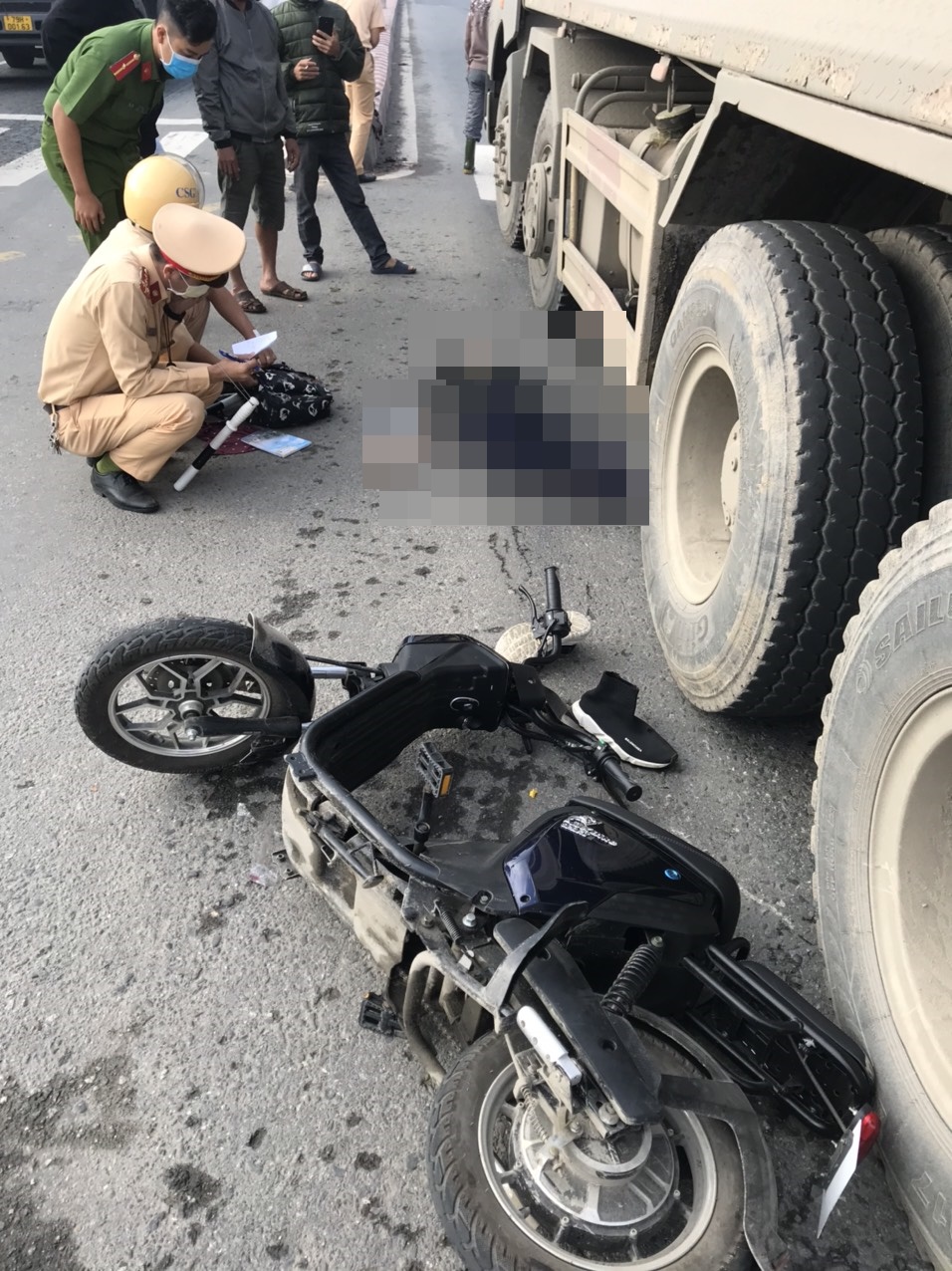 Vụ va chạm khiến em Hân bị cuốn vào gầm xe tải và tử vong tại chỗ, em Hiếu bị thương nặng. Tại hiện trường, xe điện nằm cạnh bánh sau của ô tô tải và bị hư hỏng nặng.