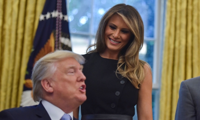 Cựu đệ nhất phu nhân Melania nhìn chồng trong một cuộc họp ở Phòng Bầu dục hồi tháng 9/2017. Ảnh: Washington Post.
