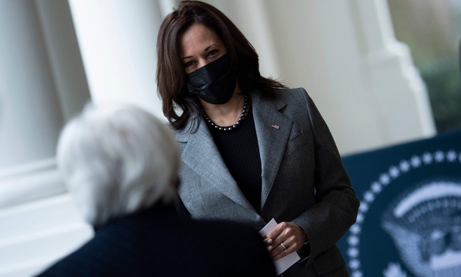 Phó tổng thống Kamala Harris trong buổi lễ tuyên thệ nhậm chức của Bộ trưởng Tài chính Janet Yellen vào ngày 26/1 tại Washington DC. Ảnh: AFP.