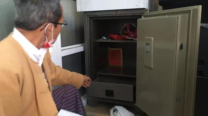 "Két sắt trống trơn", Soe Win nói, chỉ vào khoang trống ở trong két sắt lớn màu xám. "Bên trong vốn có tiền mặt, séc ngân hàng, sổ ngân hàng... Tôi không biết chính xác bên trong có bao nhiêu tiền". Danh sách khách ký tên khi tới trụ sở đảng cũng biến mất.