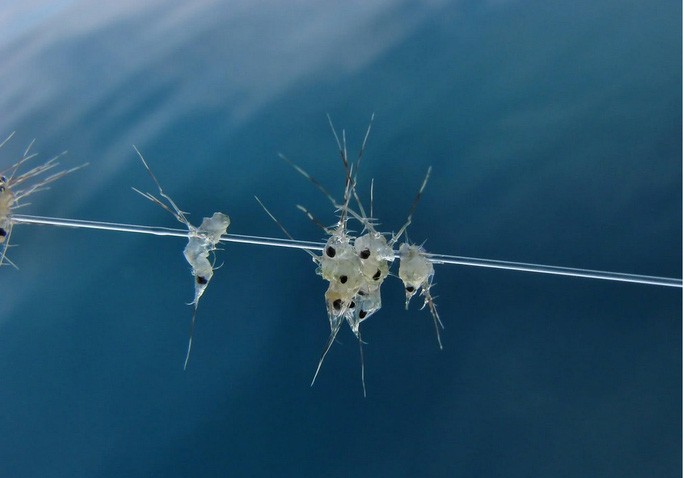 Rận nước gai bu trên một dây câu. Ảnh: Minnesota Sea Grant