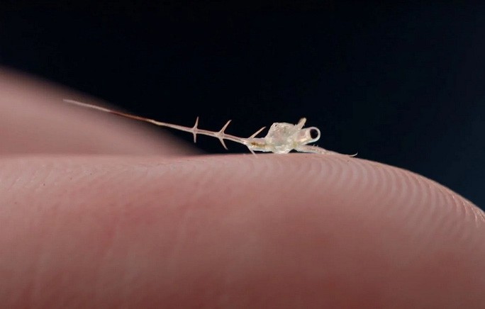 Một con rận nước gai trên ngón tay của một nhà nghiện cứu. Ảnh: Trung tâm Nghiên cứu các loài xâm lấn Minnesota