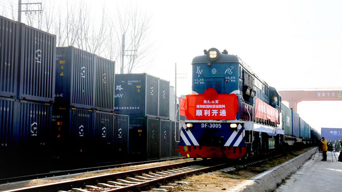 Một đoàn tàu hàng khởi hành từ tỉnh Hà Nam - Trung Quốc đi châu Âu hôm 22-12-2020. Ảnh: VCG