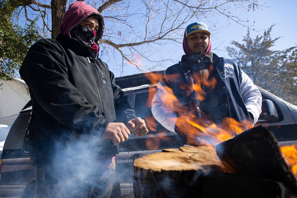 Người dân Dallas cố sưởi ấm ở ngoài trời vì nhà đã mất điện. Ảnh: AP.Vấn đề không phải lần đầu