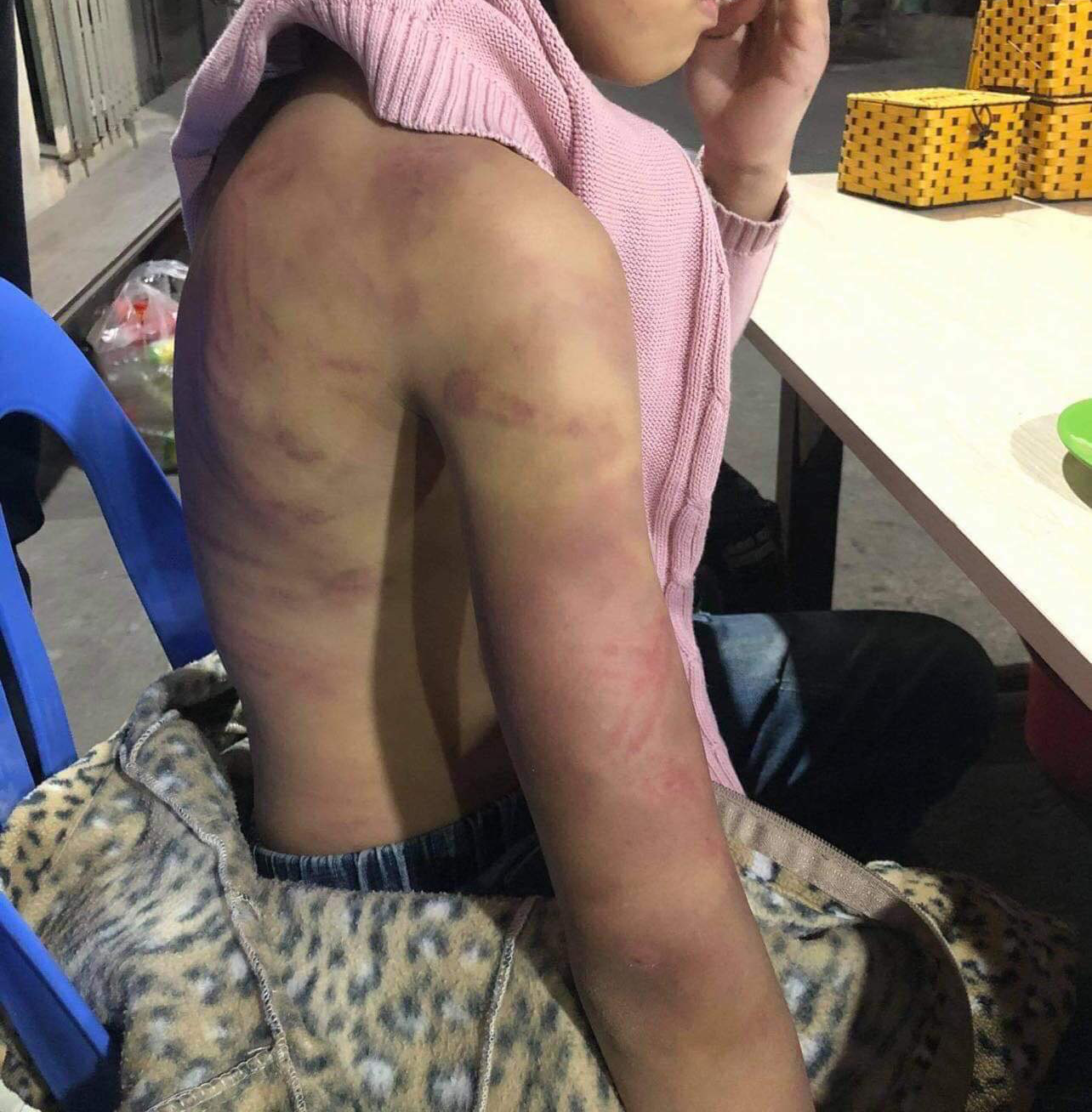 Những vết roi trên lưng em B do bị mẹ ruột đánh đập.
