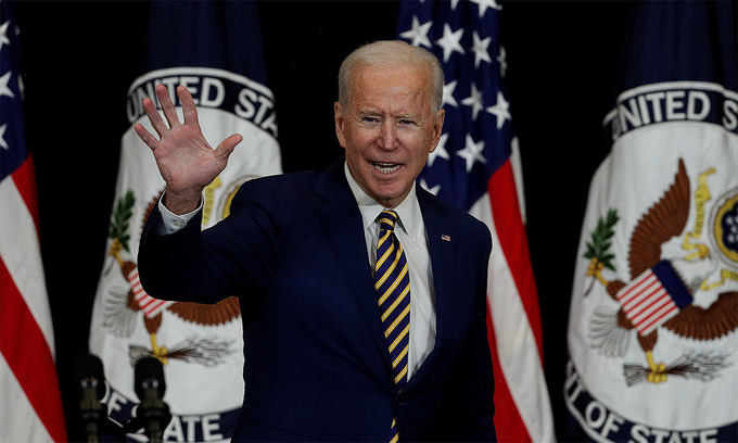Tổng thống Mỹ Joe Biden vẫy tay sau khi phát biểu tại Bộ Quốc phòng ngày 4/2. Ảnh: Reuters.