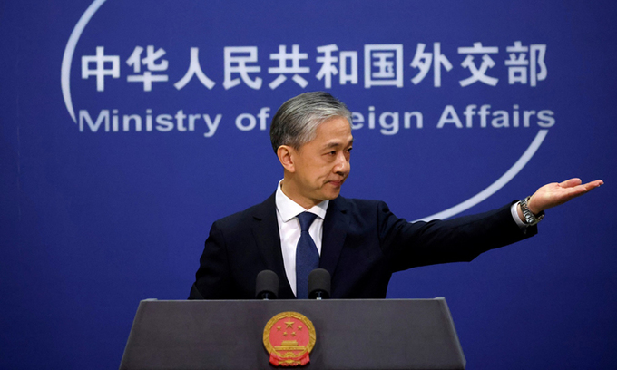Phát ngôn viên Bộ Ngoại giao Trung Quốc Uông Văn Bân tại cuộc họp báo ở Bắc Kinh tháng 12/2020. Ảnh: Reuters.