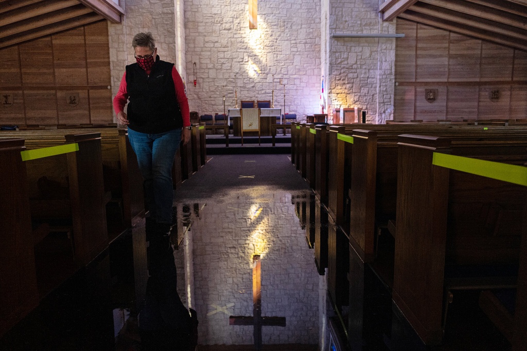 Nhà thờ Episcopal của họ, nơi có ba thành viên qua đời do Covid-19 trong năm qua, cũng bị ngập lụt.