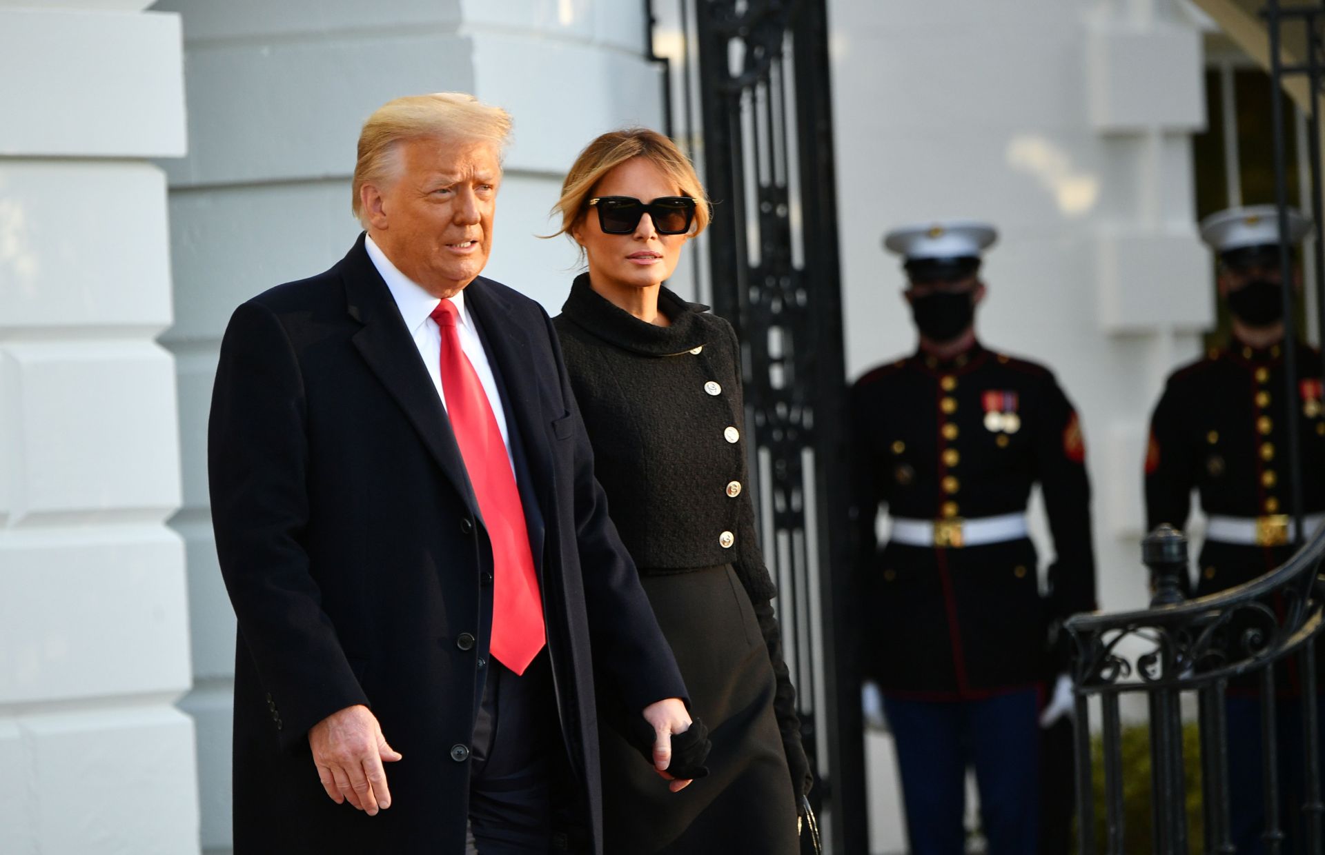 Hai vợ chồng cựu Tổng Thống Donald Trump rời Tòa Bạch Ốc trong ngày cuối cùng tại nhiệm. (Hình: Mandel Ngan/AFP via Getty Images)