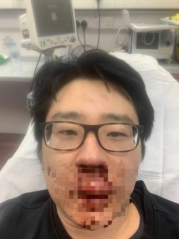 Wang cho biết anh cũng hét lại. Những người đó lái xe đi rồi quay lại tấn công anh, khiến anh chảy máu mũi và bầm tím mặt, tay.