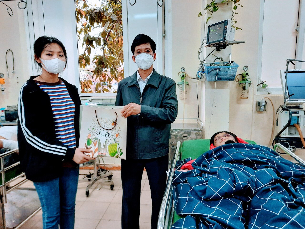 Đại diện lãnh đạo huyện Cẩm Giàng đến thăm, động viên và tặng quà cho cháu V.N.P.C. tại Bệnh viện Đa khoa tỉnh Hải Dương.