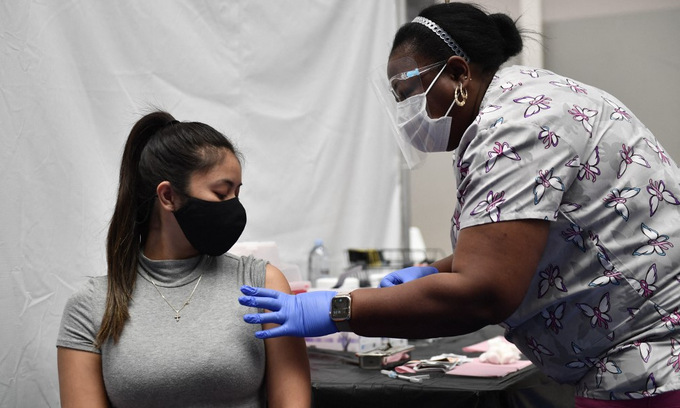 Người dân Mỹ tiêm vaccine Covid-19 tại Los Angeles hôm 8/3. Ảnh: AFP.