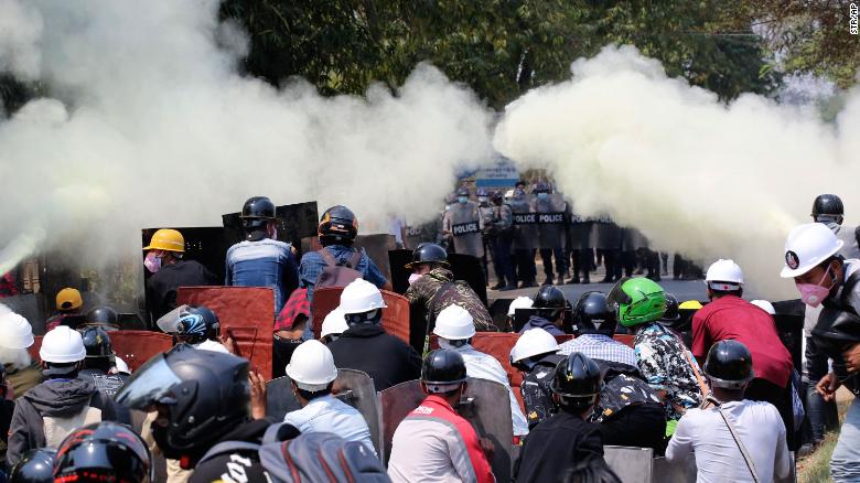 Những người biểu tình bị dồn vào chân tường sau một ngày biểu tình căng thẳng ở Myanmar.