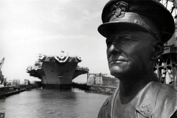 Tượng đài Đô đốc Chester William Nimitz Sr tại lễ hạ thủy tàu USS Nimitz hôm 3/5/1972. Ảnh: Hải quân Mỹ