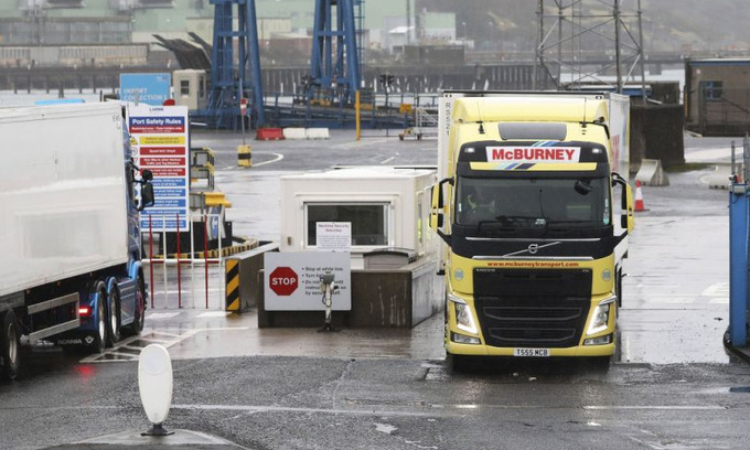 Một chốt kiểm soát hàng hóa ở Bắc Ireland hồi tháng 2. Ảnh: AP.