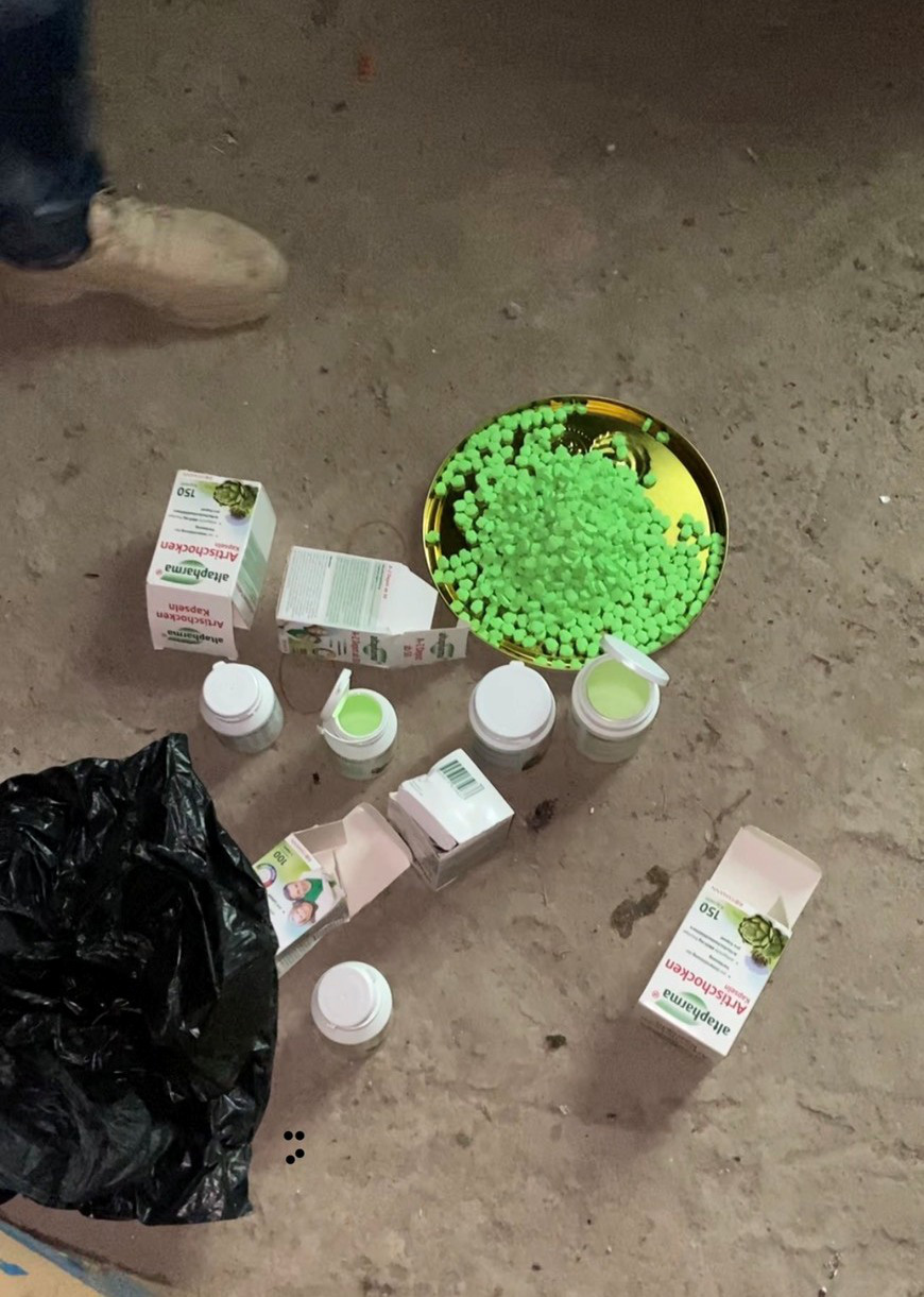 Tang vật thu giữ được gồm 1.108 viên ma túy tổng hợp có trọng lượng 650 gr và nhiều tang vật liên quan đến vụ án.