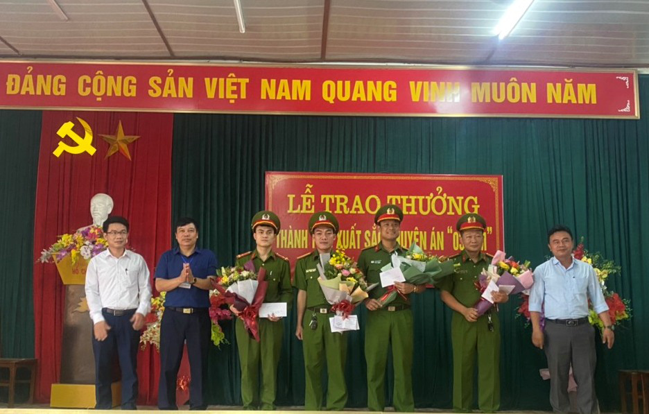 Lãnh đạo huyện Yên Thành chúc mừng ban chuyên án "0321M" triệt phá đường dây ma túy khủng tại huyện Yên Thành, Nghệ An.