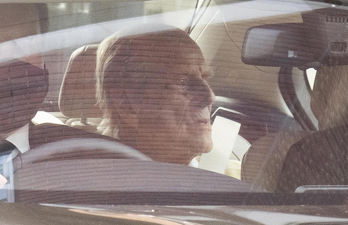 Hoàng thân Philip trên đường từ bệnh viện về lâu đài Windsor hôm 16/3. Ảnh: PA.