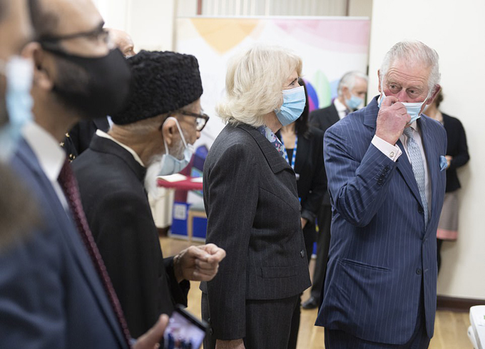 Thái tử Charles và vợ đi thăm trung tâm tiêm phòng Covid-19 hôm 16/3. Ảnh: PA.
