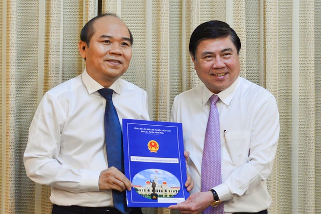 Chủ tịch UBND TPHCM Nguyễn Thành Phong trao quyết định bổ nhiệm ông Trần Văn Bảy giữ chức Phó Giám đốc Sở Tài nguyên - Môi trường TP.